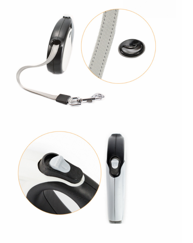 Função: guia retrátil resistente, ideal para passeios ao ar livre com total segurança e controle